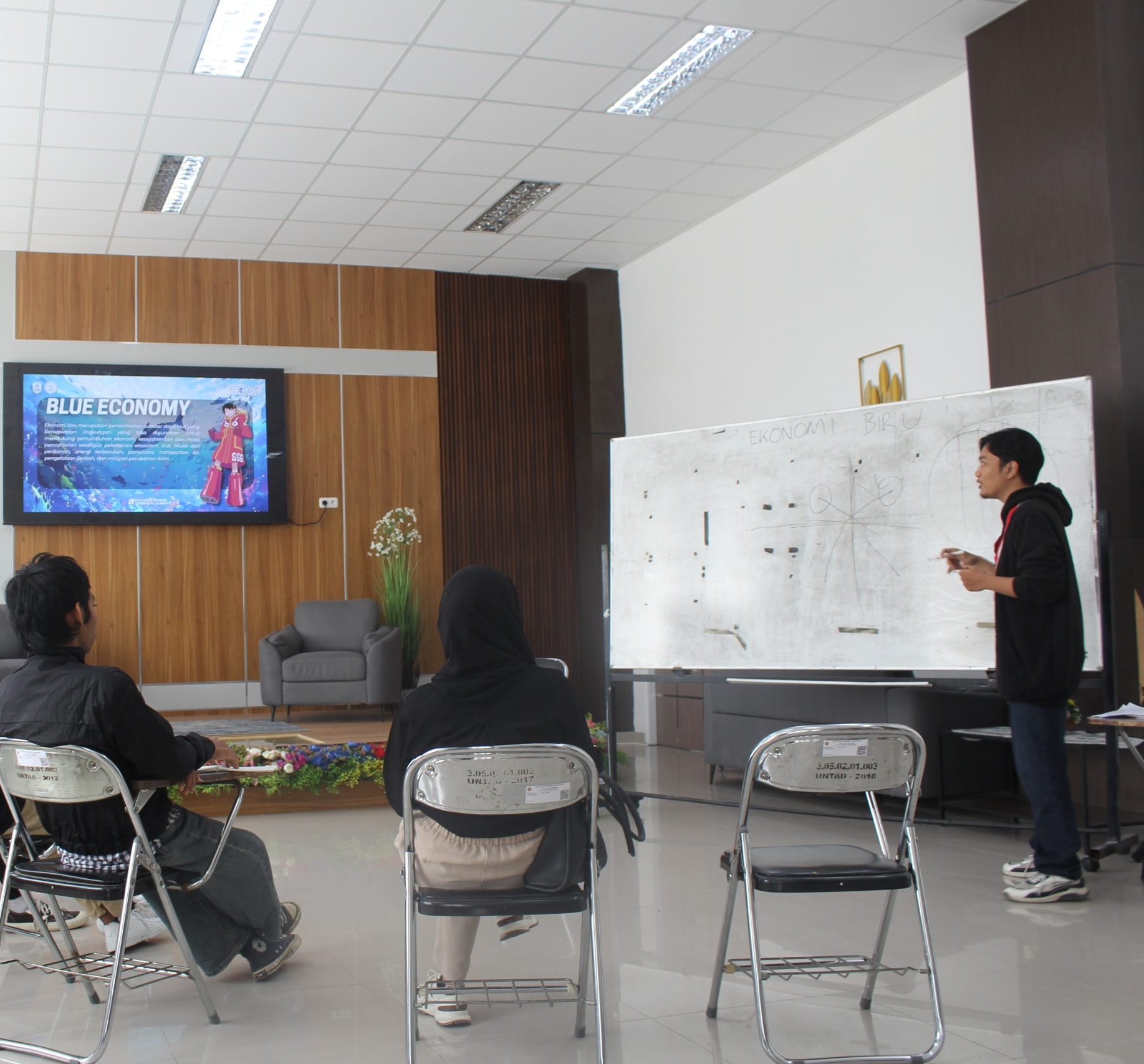 GMNI FEB-UNTAD juga melaksanakan Kuliah Umum pada Rabu, 3 Desember 2025 yang dibawahkan oleh Bapak Failur Rahman selaku Dosen IESP untuk menambah kapasitas anggota dalam memahami konsep Ekonomi Biru, “tujuan utama ekonomi biru adalah meningkatkan pertumbuhan ekonomi melalui sektor-sektor kelautan, seperti perikanan, pariwisata bahari, transportasi laut, dan energi terbarukan (seperti energi gelombang atau angin laut) secara berkelanjutan.” Ujar Bapak Failur Rahman.