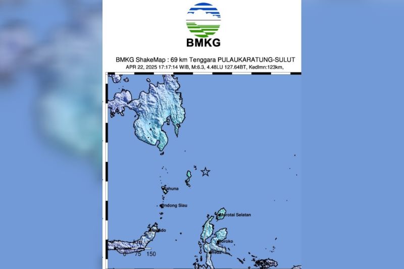MANADO – Gempa bumi berkekuatan magnitudo 6,3 mengguncang wilayah Kabupaten Kepulauan Talaud, Sulawesi Utara, pada Selasa (22/4/2025) pukul 17.17 WIB. Badan Meteorologi, Klimatologi, dan Geofisika (BMKG) menyebut gempa ini disebabkan oleh aktivitas intraslab Lempeng Laut Maluku dan tidak berpotensi menimbulkan tsunami.